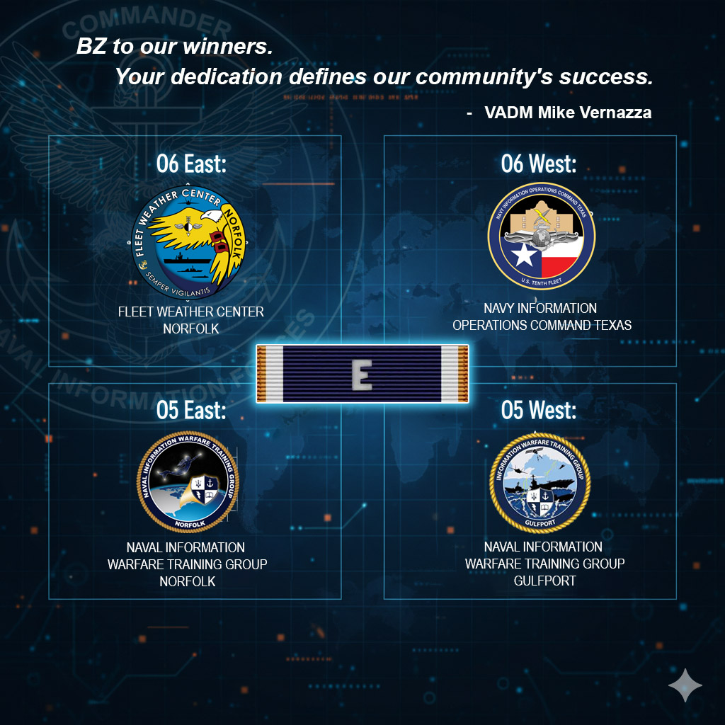 The Battle “E” award program was recently expanded by the Chief of Naval Operations to include the Information Warfare community, acknowledging the critical warfighting capabilities IW provides to the fleet. The winning commands represent the top ten percent of all IW commands, selected based on their performance throughout 2025.