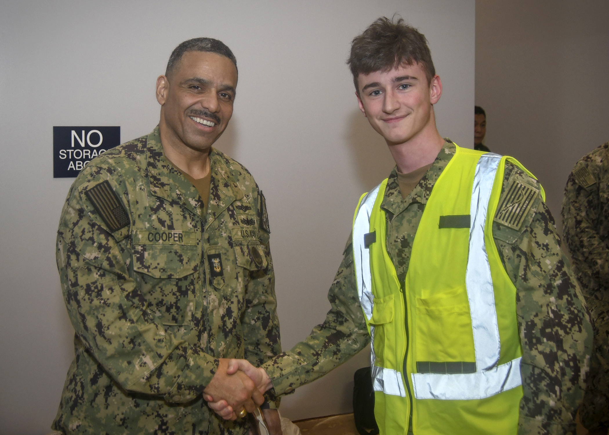 SLIDESHOW | images | 260220-N-IP029-1476 Force Master Chief Augustine Cooper, left, poses for a photo with Information Systems Technician Seaman Ethan Slaughter during an engagement with Information Warfare Sailors stationed on the U.S. territory of Guam. NAVIFOR mans, trains and equips nearly 100 Information Warfare-related commands across the globe, providing administrative control. This week, Vice Adm. Mike Vernazza, Commander, Naval Information Forces and Force Master Chief Cooper are visiting various IW commands within U.S. Pacific Fleet to support mission readiness across the IW domain. (U.S. Navy photo by Mass Communication Specialist 2nd Class Ray McCann/ RELEASED)